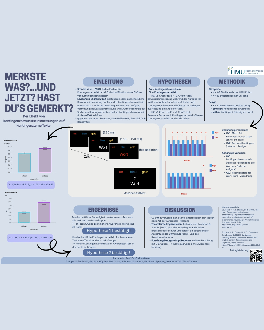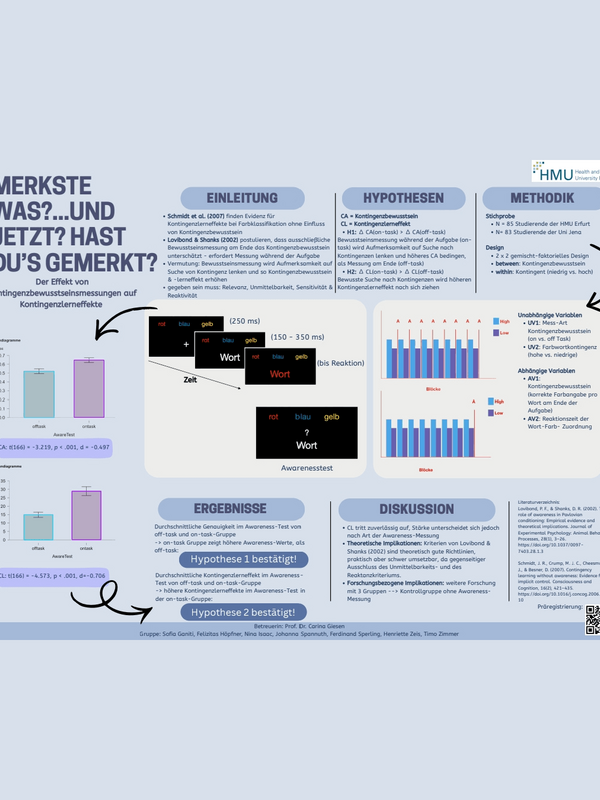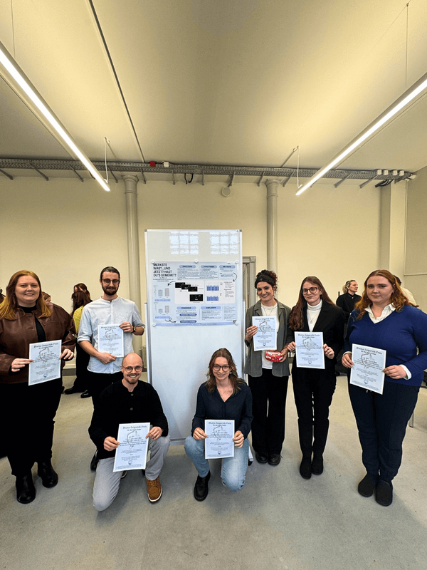 Im Anschluss an die Session wurde der Bluma-Zeigarnik-Preis für das beste Poster verliehen, den sich Gruppe Vier mit dem Titel "Merkste was?... Und jetzt? Hast Du's gemerkt?" wohlverdient abholen durfte. Herzlichen Glückwunsch an Sofia, Felizitas, Nina, Johanna, Ferdinand, Henriette und Timo!
