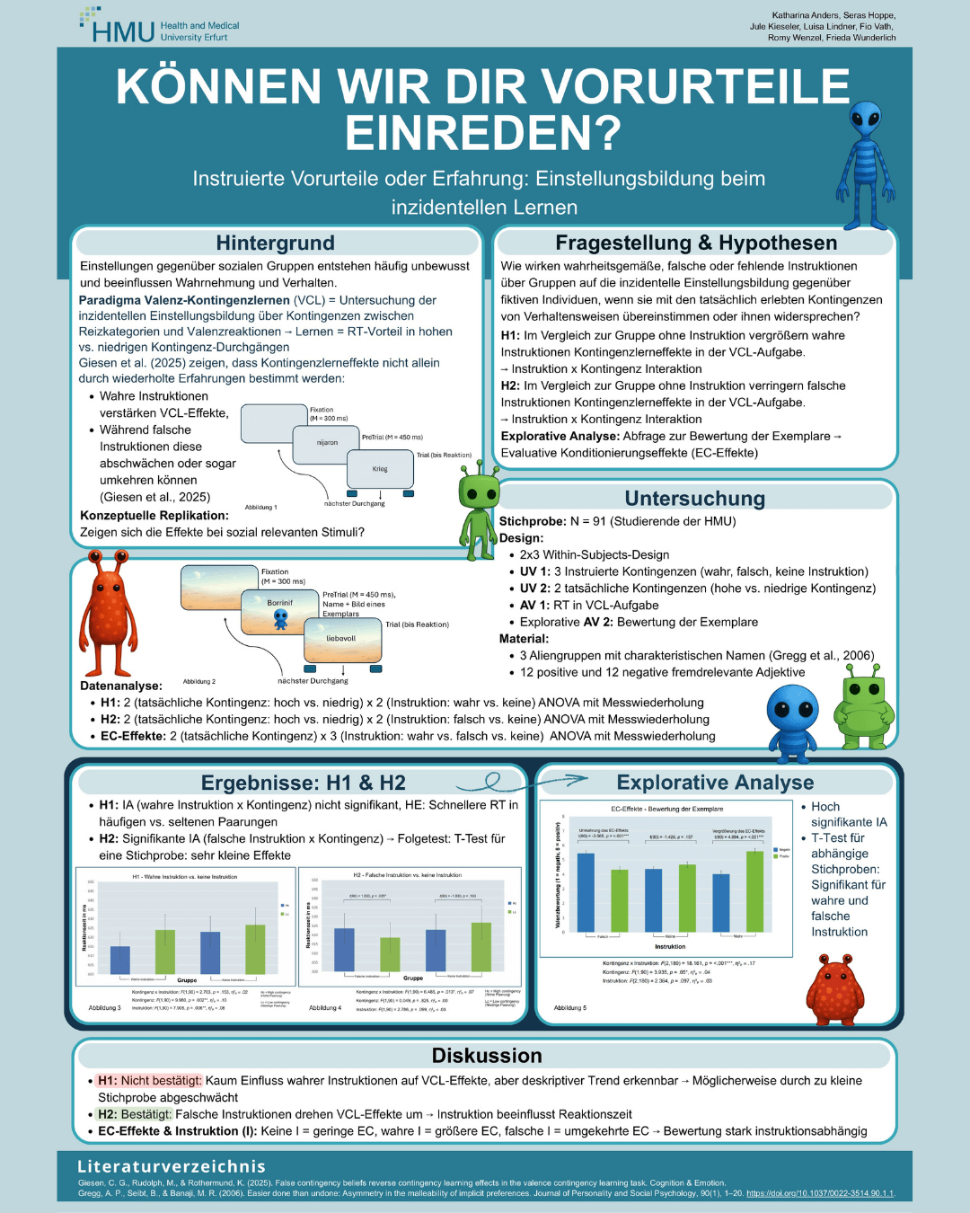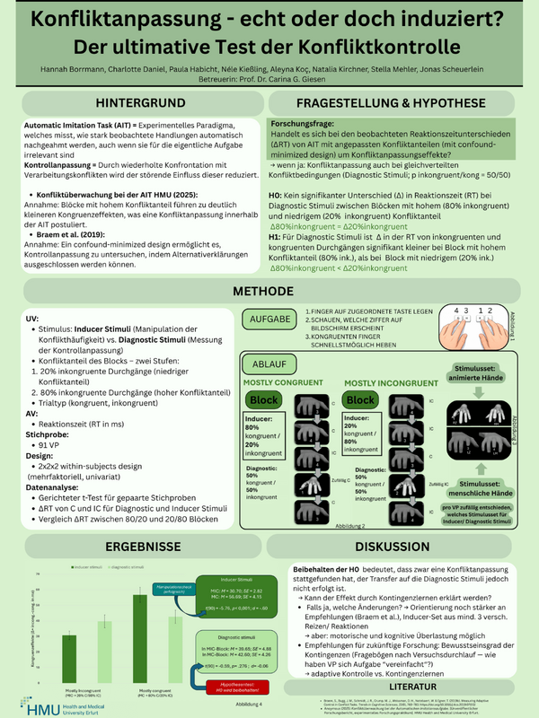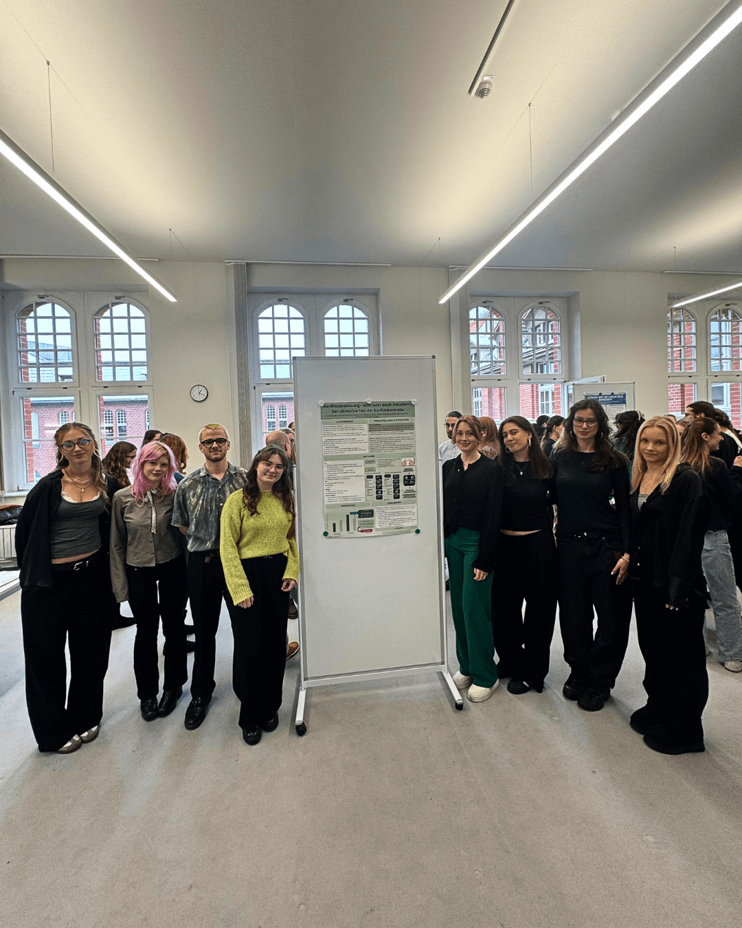 Zum Abschluss dieses Wintersemesters kam unser drittes Semester Psychologie zusammen, um die Ergebnisse ihrer Experimentellen Praktika vorzustellen. Vier Gruppen präsentierten ihre Themen und durften sowohl mit Dozierenden als auch mit Studierenden ins Gespräch zu ihren Postern kommen.